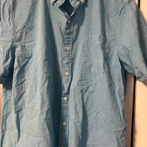 Massimo Dutti skjorte for herre i størrelse M. Skjorten er blå med små ruter. Passer til hverdagsbruk eller mer formelle anledninger avhengig av styling.
