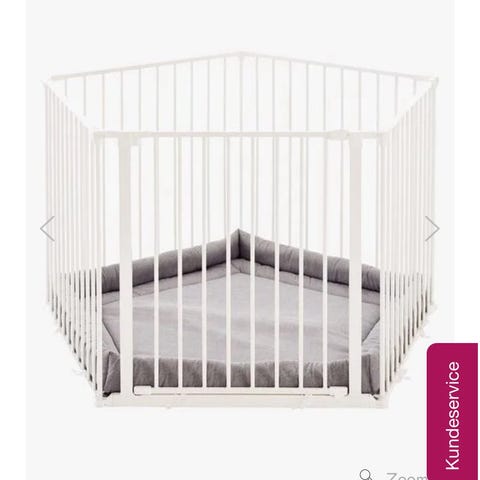 Grindens seks sider kan justeres i vinkel slik at den kan brukes både som frittstående lekegrind og som avgrensning foran for eksempel peis eller andre områder i rommet.