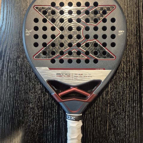 Selger en brukt Nox LA10 Quantum 12K racket. Noen bruksmerker på toppen av racketen, men ingen strukturelle skader, bare lakk som er chippet av.