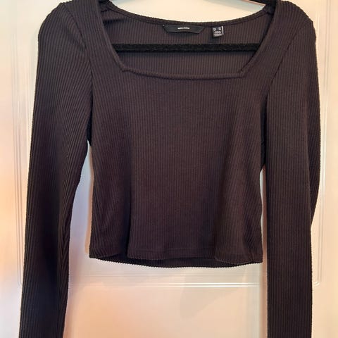 Ukjent merke ribbestrikket genser for dame i størrelse XS. Genseren er grønn og har lange ermer. Den har rund hals og tydelig ribbestruktur i stoffet, som gir en kroppsnær passform.