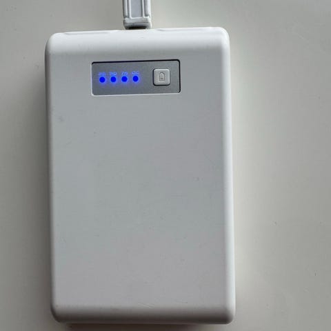 Selger en EasyAcc 20 000 mAh powerbank som er pent brukt. Robust og IP67‑klassifisert – tåler vann, støv og støt når portene er lukket.