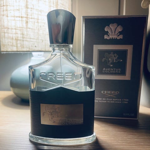 Creed Aventus parfyme for menn. Eau de parfum i original flaske med tilhørende eske, som vist på bildene. Klassisk glassflaske med svart detaljering og spraydyse. Passer som duft til herre til daglig bruk eller ved spesielle anledninger.