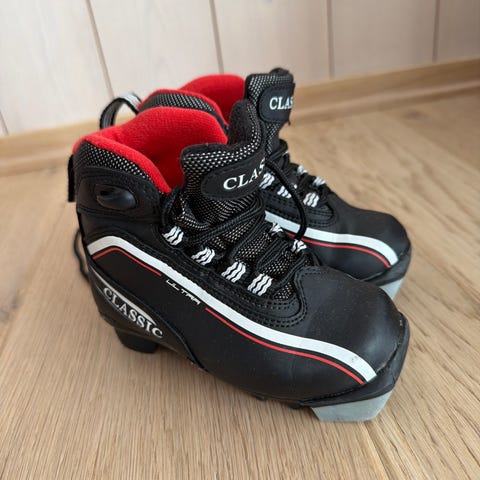 Støvlene har snøring og glidelås foran med beskyttende klaff. Overdelen er i syntetisk materiale, og innsiden er fôret for ekstra varme. Sålen er i plast/gummi tilpasset langrennsbindinger for barn.
