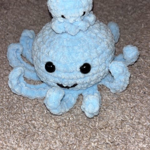 Blå Blekkulfiske myk lekedyr egnet for barn. Laget i mykt materiale, designet som en blå blekkulfisk med detaljer som tentakler og øyne.