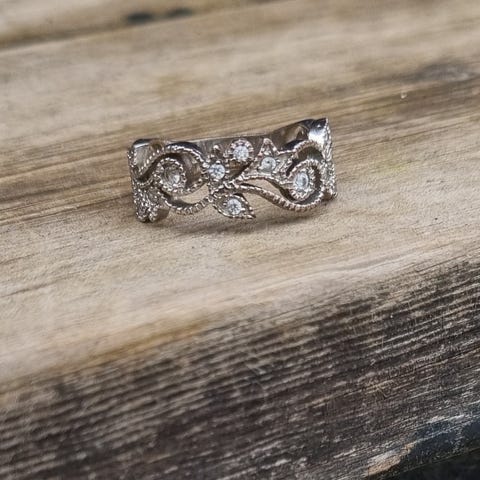 Sølvring 925, innsats: zirkonium. Størrelse 52