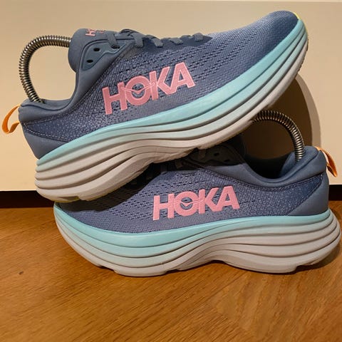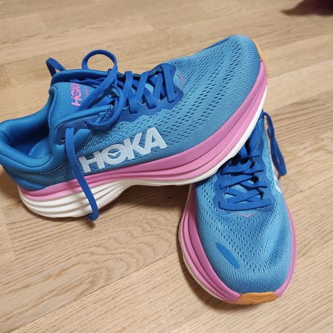 Modellen har overdel i pustende mesh i blå og lys grønn tone med lilla detaljer og kraftig mellomsåle. Yttersåle i gummi for godt grep.