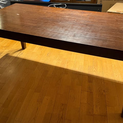 Spisebord gis bort, 94cm bredt og 2 m langt, pluss 2 ileggsplater på 45cm.