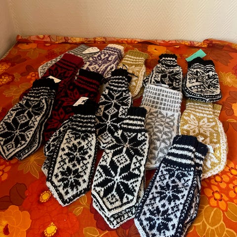 Nr. 1, 2 og 4 strikket i dobbel Gammelserie fra Rauma.