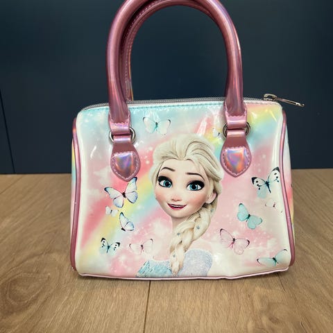 Disney Minnie & Mickey veske i vanntett rosa stoff, glidelås oppe. Gode hanker som rekker over skulderen