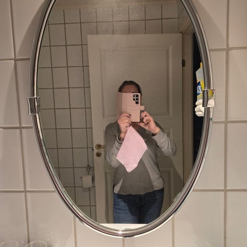 IKEA sminkespeil med LED-lys i hvit plast. Speilet har innebygde lysdioder rundt speilflaten og en berøringsknapp på fronten for å slå lyset av og på. Baksiden har bryter og batteriluke. Speilet står på en rund fot med liten oppbevaringsflate, og vinkelen kan justeres med leddet feste på baksiden. Egnet som bord- eller sminkespeil på bad eller soverom.