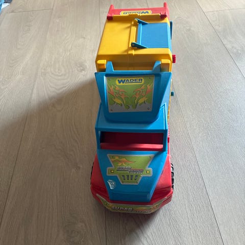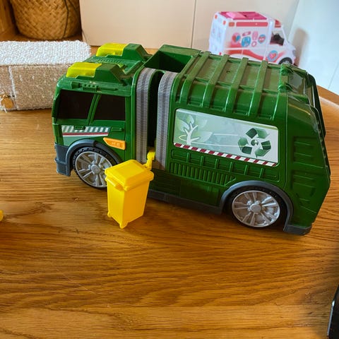 Paw Patrol lekebil søppellastebil i grønn plast med blå beholder og oransje detaljer. Lastebilen har bevegelige deler, blant annet åpne- og lukkemuligheter på beholder og lasteplan. Passer til lek med Paw Patrol-figurer og kjøretøy, og kan brukes både alene og sammen med annet Paw Patrol-leketøy.