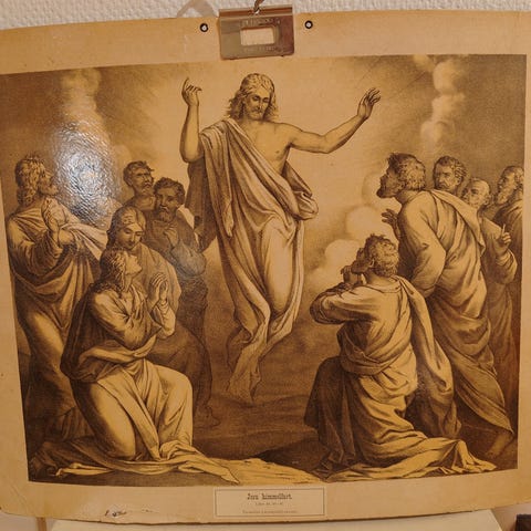 Selger en gammel/vintage plansje/skoleplansje med religiøst motiv: