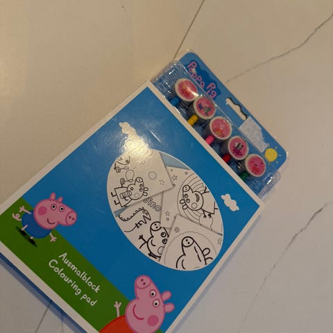 Peppa Gris stempelsett for barn. Settet inneholder flere stempler med motiver fra Peppa Gris-universet, stempelpute og fargepenner. Egnet til tegning, kortlaging og andre kreative aktiviteter for barn som liker Peppa Gris.