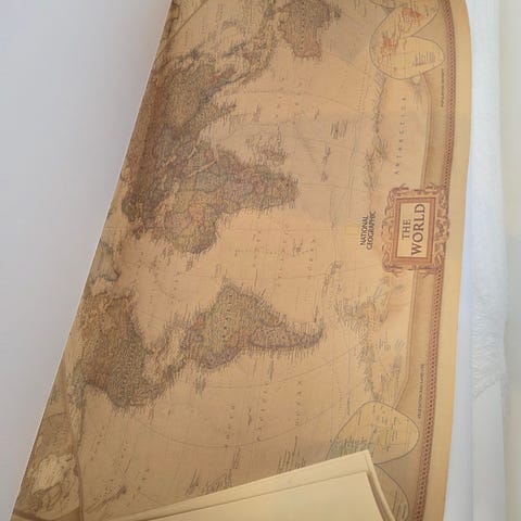 Kart over Kina og nærliggende områder i Asia. Viser landegrenser, større byer, fjellkjeder og elver. 77x60cm