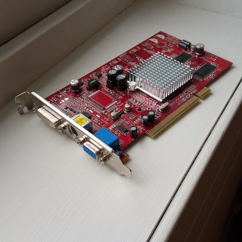 TV-Encoder: ATI ImpacTV2. Dette er en integrert brikke som konverterer det digitale signalet til analogt NTSC eller PAL for visning på TV.