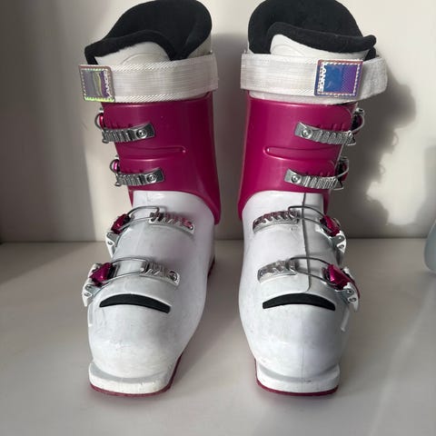 Pent brukte Lange Starlet alpinstøvler for barn i hvit og rosa, mondo point 23,5 (som tilsvarer ca str 36-37 i sko).