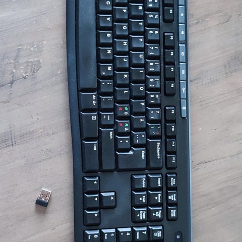 Logitech trådløst tastatur med USB-mottaker i svart farge. Standard tastaturoppsett med funksjonstaster og numerisk tastatur. Leveres med trådløs USB-mottaker for tilkobling til datamaskin. Egnet som tilleggsutstyr til stasjonær eller bærbar PC som støtter trådløse USB-tastaturer.