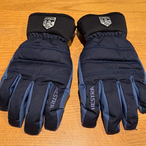 - Blå/grå hansker, godt brukt (der hvite skinnet er misfarget, eller i god stand), str 7, 200 kr