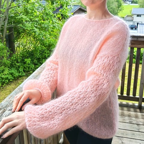 Pudderpiken strikket i mohair Kidsilk. Hjemmestrikk str M/L. Kan sendes mot porto