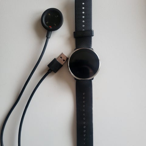 Lader og original pakning følger med. Flott treningsklokke med GPS og mange flotte treningsfunksjoner. Klar til bruk :-)