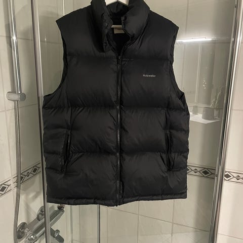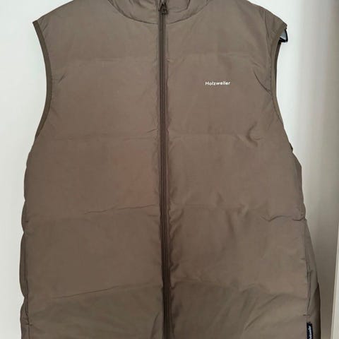 Holzweiler vest for dame i størrelse S. Vesten er oversize og kan også fungere til en str M, hvis man liker den litt tightere. Fyllet består av 80 % andedun og 20 % andefjær. Vesten har vannavvisende overflatebehandling.