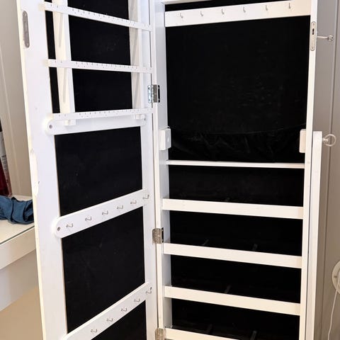 David-Andersen smykker. Flere armbånd henger på et hvitt smykkestativ med kroker og små skuffer. Smykkene fremstår som en blanding av ulike modeller og utførelser. Nærmere detaljer om materialer, farger, størrelse og mål er ikke oppgitt og bør eventuelt avklares med selger.