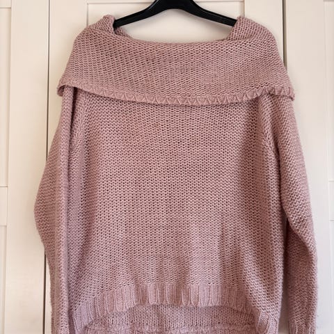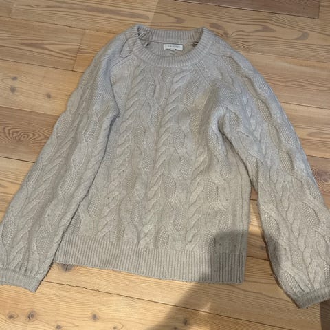 Fin og god genser med hjemme strikket preg i str L (42/44) Genseren er laget av polyester, akryl og nylon. Den er så god som ny ☺️