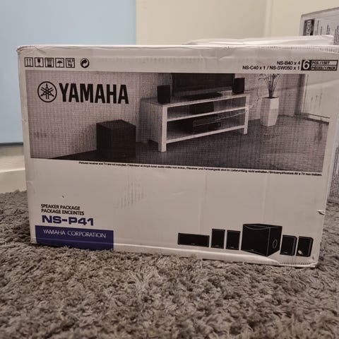 Følger også med en Yamaha forsterker og masse ledninger. Har flere lange ledninger også.