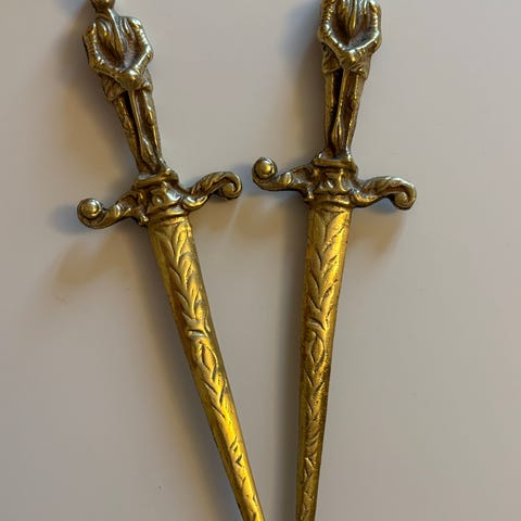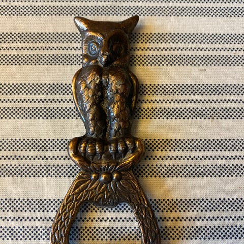 Denne elegante vintage flaskeåpneren fra 1960-tallets Italia er laget i messing og designet i form av et tau med løkke. Den skulpturelle formen og den varme gyldne tonen fremhever den tidløse sjarmen til italiensk design fra midten av århundret, og forvandler et enkelt verktøy til et dekorativt objekt med karakter. Både funksjonell og stilig, er den et raffinert tilbehør til barmiljøet ditt. Perfekt for samlere, designelskere eller som en omtenksom julegave, og den tilfører retro eleganse og raffinement til ethvert interiør. Dette vintage designobjektet er i sin originale stand og kan vise tegn til bruk.