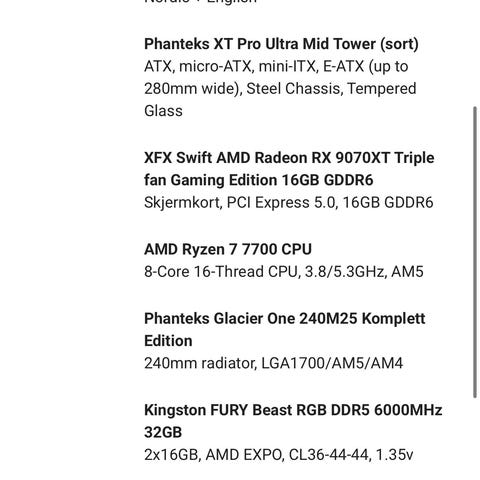 Datamaskinen ble satt sammen på Komplett-nettstedet, har knapt blitt brukt og er i veldig god stand. Alt fungerer perfekt, uten riper eller problemer. Den har fortsatt 2 års garanti.Jeg pakker den i en sikker eske og betaler for levering.