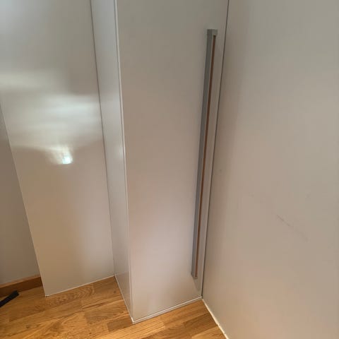 Når skapet er stående er det 30 cm bred og 120 cm høyt, og kan åpnes fra høyre eller snu skapet og åpne fra venstre.