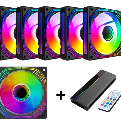 Phantom Controller PC-kabinett vifter med RGB-belysning. Pakken inneholder 6 stk. 120 mm kabinettvifter, en Phantom fan controller og en fjernkontroll for styring av lys og viftehastighet. Viftene har flerfarget RGB-lys i ringen rundt viftebladene og monteringshull i hjørnene for standard kabinettmontering. Controlleren har flere vifteuttak merket FAN1–FAN10 (antall porter kan variere etter modell) for tilkobling av flere vifter i samme system. Egnet til bruk i stasjonære PC-kabinetter der man ønsker styring av vifter og RGB-belysning via medfølgende kontroller og fjernkontroll.