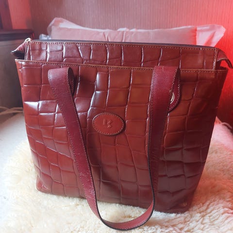 Bright red vintage leather bag in exellent condition. Nice shape . Long strap.