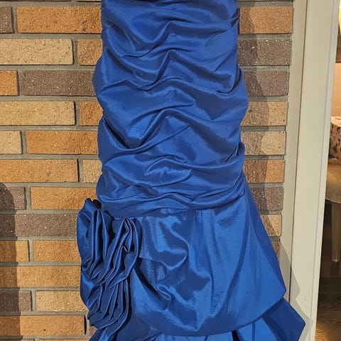 Floyd kjole med sjal til spesiell anledning for dame i størrelse M/ L. Kjolen er blå og laget i polyester. 🩵