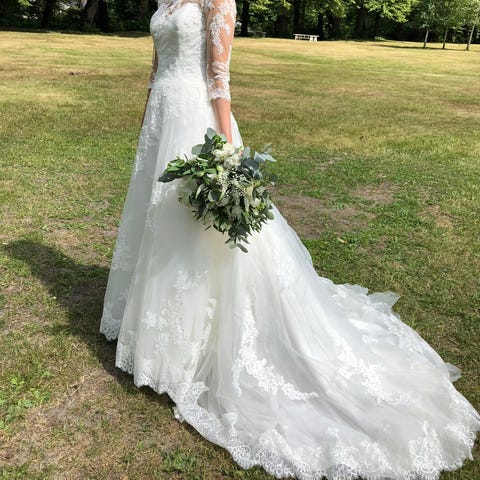 Min fine brudekjole som er endret litt fra originalen, til det bedre og mer elegante i mine øyne.
