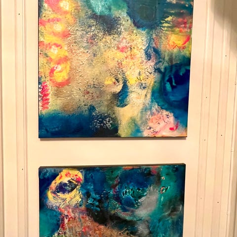 Har også flere abstrakte malerier i samme størrelse