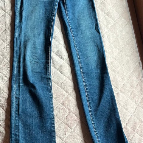 Lois jeans i blå denim for dame. Buksen har livvidde W24 og tilsvarer størrelse S.