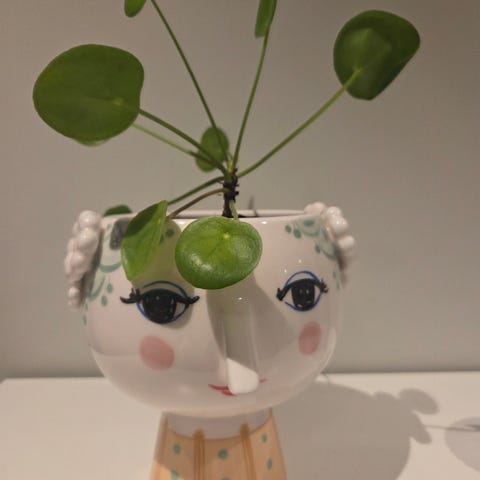 Pen potteskjkler/urtepotte i hvit porselen med hvit dekor.. Potteskjuleren er formet og håndmalt som en fugl i Bjørn Wiinblads unike stil. Det er en åpning bak på potteskjuleren, så du enkelt kan vanne.