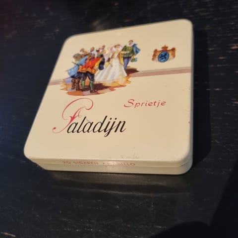 Selger to eldre/vintage pillebokser i metall, begge med flott patina og klassisk uttrykk.