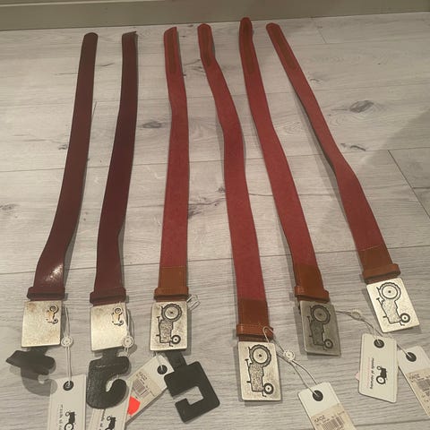 1 hvitt kult et, 100 kr + evt frakt, 1 fløyelsmykt rødt et, 100 kr + evt frakt og et grønt et med spenne 60 kr + evt frakt. Alle beltene er brukt veldig lite/ ikke noe.