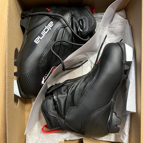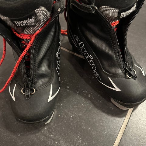 Alpina T5 Plus Touring Jr i svart med røde lisser.