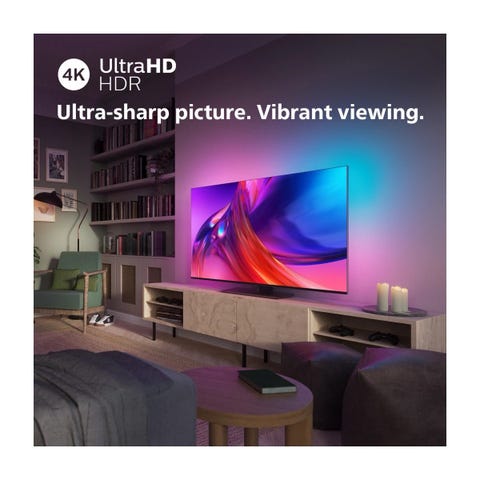Ambilight: Innebygde LED-lys på baksiden som reagerer på det som skjer på skjermen for en mer oppslukende opplevelse.