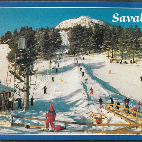 Savalen Kunstisbane postkort med motiv av skøytebane og omgivelser. Beliggende ved innsjøen Savalen i Tynset kommune i Innlandet, 724 m.o.h, var dette landets høyest beliggende kunstisbane for skøyter. Eric Heiden satte to verdensrekorder på 1000m i 1978, og 3000m i 1980. Strøkent, ubrukt storformat, se bilder