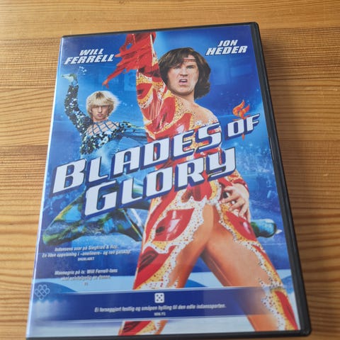 Blades of Glory DVD film. Komedie på DVD i standard plastetui. Forsiden viser originalt omslag med tittel og hovedskuespillere, baksiden har informasjon om filmens innhold og ekstramateriale. En DVD-plate ligger i etuiet. Egnet for avspilling på DVD-spillere som støtter regionen angitt på omslaget. Norsk tekst.