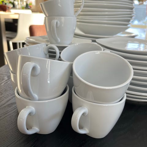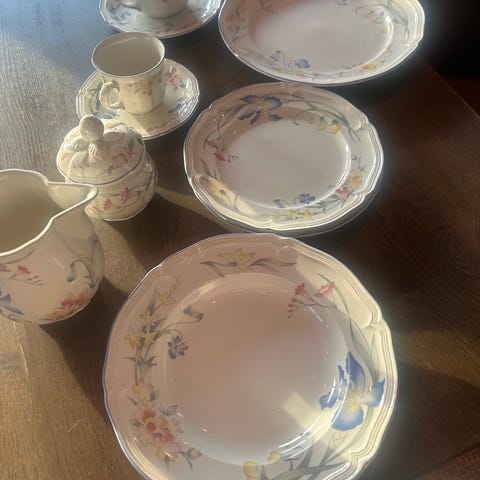 Frokost og middags service til 4 stk. Mangler dessverre 1 middags tallerken. Ellers er serviset pent brukt uten skår.