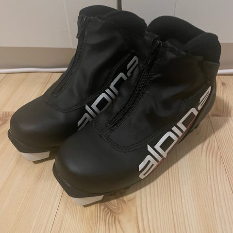 Alpina langrennsstøvler i svart farge. Støvlene har snøring med glidelåslukking over vristen og plasthelkappe for bedre støtte. Sålen er tilpasset moderne langrennsbindinger.