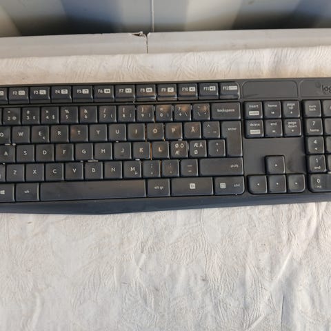 Tastaturet er brukt og viser normale tegn på slitasje (støv og overfladiske merker), men fungerer godt. Ikke nylig testet, men antas å være i orden; kjøper kan returnere varen hvis den ikke fungerer. USB-mottaker inkludert (se bilder).