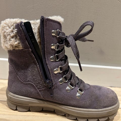 Kuling vintersko for jente i størrelse 31. Skoene har rosa skaft med snølås og sort, robust bunn med grov såle. Innsiden er fôret med mykt, isolerende materiale for ekstra varme. Egnet som vintersko til bruk i kaldt og fuktig vær.