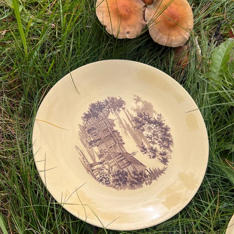 3 -4 fine/ gamle dessertskåler i serien Brit I samme farge, pluss 1 som er litt mer brunskjær, virker noen mm større. 1 av de har et bittelite nag på innsiden som kjennes med fingeren. Prøvd å vise på bilde.