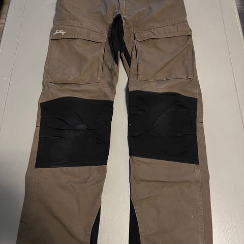 Tur-/friluftsbukse for barn i størrelse 146 -152. Buksen er i blå farge med mørkere felt på knær og sete. Egnet til fottur og annen utendørs aktivitet. Buksen har flere lommer foran og på lårene for praktisk oppbevaring. Det er synlig en mindre rift/skade i stoffet på det ene beinet, som vist på bilde.